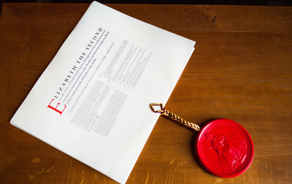 Yn ôl ym mis Mehefin eleni, cymeradwyodd Ei Mawrhydi y Frenhines Orchymyn y Cyfrin Gyngor yn dyfarnu Siarter o Ymgorfforiad i’r Gymdeithas. Daeth y Siarter Brenhinol i rym yn gyfreithiol gyda gosod y Sêl Fawr ar gopi memrwn a seliwyd gan Swyddfa’r Goron yn Nhŷ’r Arglwyddi ddiwedd mis Medi.